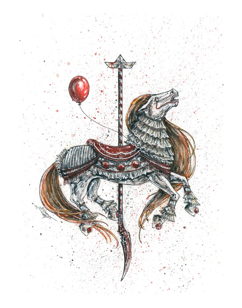 Carousel of Nightmares Pennywise Horse 11x14 Signed Art Print
