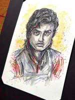 Steve the Hair Harrington 5x8 Original Color Pencil, Ink And Watercolor Plus Dice and Dice Bag