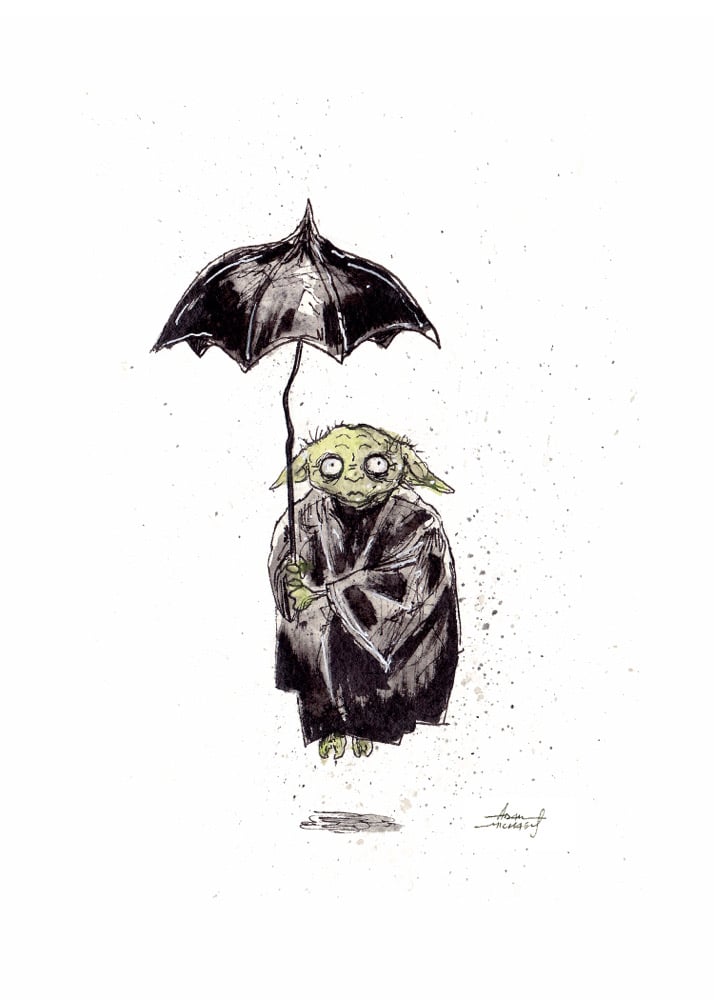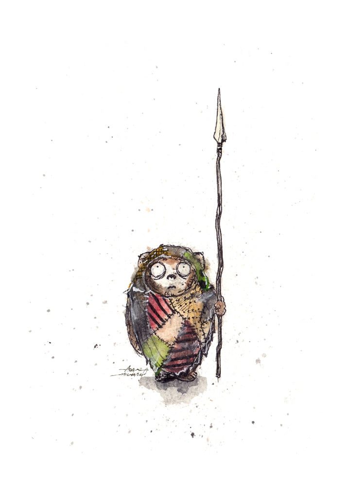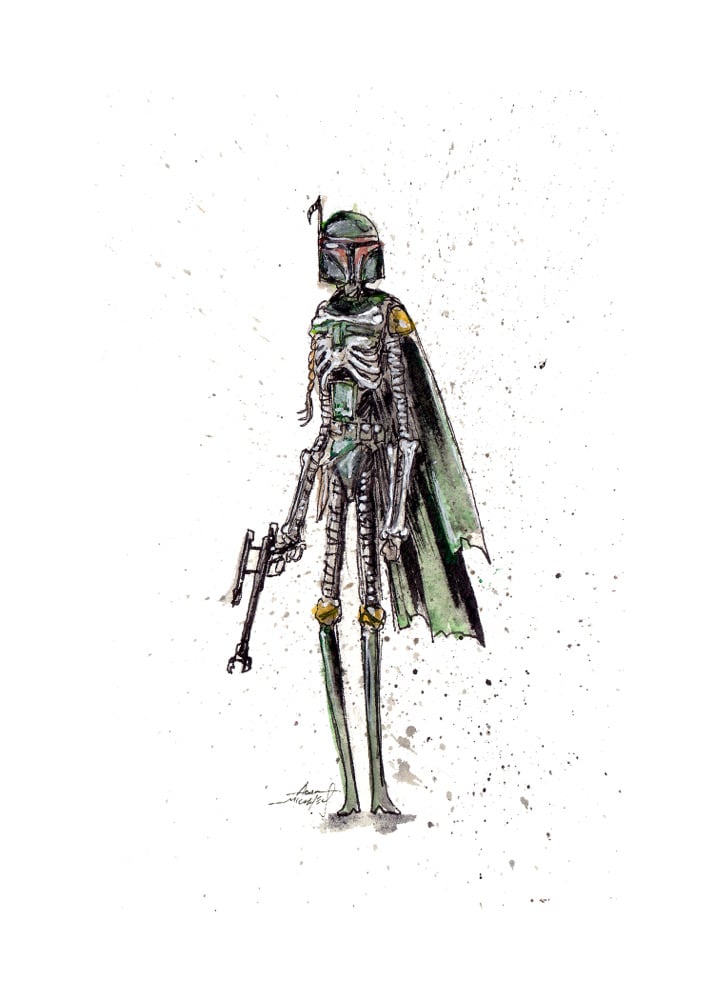 What if Tim Burton created Star Wars? Here's a love letter to that thought I have had for such a long time. These pieces, originally done with ink and watercolor on Arches watercolor paper, are now available as high quality 5x7 signed 100lbs prints.